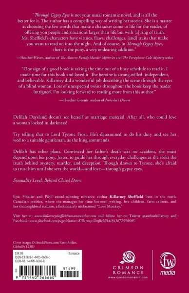 Delilah Daysland doesn't see herself as marriage material. After all, who could love a woman locked in darkness? Try telling that to Lord Tyrone Frost. He's determined to do his duty and see her wed to a suitable gentleman, as the King commands. Delilah has other plans. Convinced her father's death was no accident, she must depend upon her pony Jester to guide her through everyday challenges as she seeks the truth behind mystery, murder, and deception. Though drawn to Tyrone she's afraid to trust him, until she sees the world and love through gypsy eyes. Sensuality Level: Behind Closed Doors