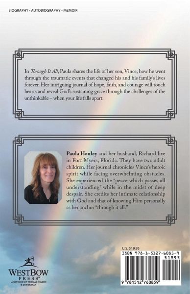 In Through It All, Paula shares the life of her son, Vince; how he went through the traumatic events that changed his and his family’s lives forever. Her intriguing journal of hope, faith, and courage will touch hearts and reveal God’s sustaining grace through the challenges of the unthinkable – when your life falls apart.