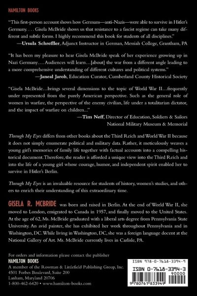 Through My Eyes differs from other books about the Third Reich and World War II because it does not simply enumerate political and military data. Rather, it meticulously weaves a young girl's memories of family life together with factual accounts into a compelling historical document. Therefore, the reader is afforded a unique view into the Third Reich and into the life of a young girl whose courage, humor, and independent spirit enabled her to survive in Hitler's Berlin. Through My Eyes is an invaluable resource for students of history, women's studies, and others to enrich their understanding of this extraordinary time.