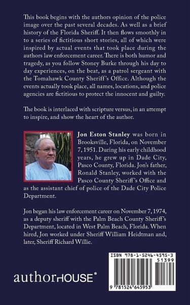 This book begins with the authors opinion of the police image over the past several decades. As well as a brief history of the Florida Sheriff. It then flows smoothly in to a series of fictitious short stories, all of which were inspired by actual events that took place during the authors law enforcement career. There is both humor and tragedy, as you follow Stoney Burke through his day to day experiences, on the beat, as a patrol sergeant with the Tomahawk County Sheriff's Office. Although the events actually took place, all names, locations, and police agencies are fictitious to protect the innocent and guilty. The book is interlaced with scripture versus, in an attempt to inspire, and show the heart of the author.