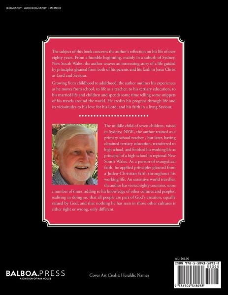 The subject of this book concerns the author's reflection on his life of over eighty years. From a humble beginning, mainly in a suburb of Sydney, New South Wales, the author weaves an interesting story of a life guided by principles gleaned from both of his parents and his faith in Jesus Christ as Lord and Saviour. Growing from childhood to adulthood, the author outlines his experiences as he moves from school, to life as a teacher, to his tertiary education, to his married life and children and spends some time telling some snippets of his travels around the world. He credits his progress through life and its vicissitudes to his love for his Lord, and his faith in a living Saviour.