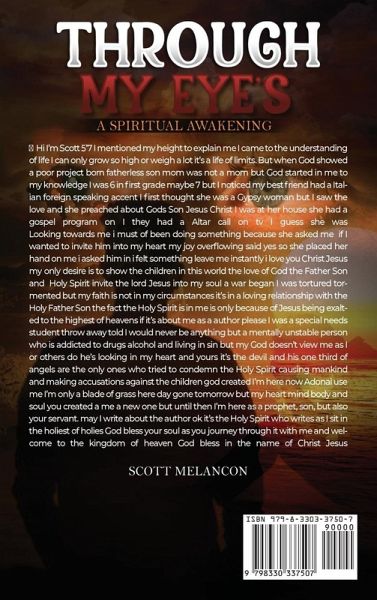 My book is a spiritual journey through my eyes and heart I'm looking from every angle I see from the kingdom above to the earth below yes I've been dragged into hell literally but I cried out for God to deliver me it's a ongoing battle but one i hope the readers are ready to strap on your seatbelt and take note it's a up and down twist and turn to a point where you discover more about God in your life than ever before the door of your heart is brought to a place I found I was there years ago I finally fought against everything trust me I mean you have no idea the cemetery and the hospital was my battle ground rising to new levels as I traveled to a different place not many people have been a position giving I'm in the same place every time I close my eyes or meditate on his words as I see the pain he's feeling groaning in my soul I pray for you and your family in Jesus Christ Holy name light that fire no one should be able to put it out no more doubts we are Gods children welcome to my view God bless as I bring your very soul to the holiest of holies just believe in Gods word I'm just a vessel he's chosen crying out open up your heart to a blessing your heart will have to overflow down throughout your soul until you glow I'm glorifying my messiah until mount Zion one day I'll be caught up or martyred for my testimony and who I stand for absent from the body present with the lord.