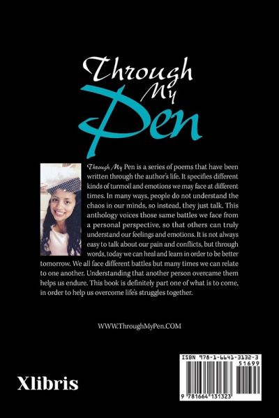 Through My Pen is a series of poems that have been written through the author's life. It specifies different kinds of turmoil and emotions we may face at different times. In many ways, people do not understand the chaos in our minds, so instead, they just talk. This anthology voices those same battles we face from a personal perspective, so that others can truly understand our feelings and emotions. It is not always easy to talk about our pain and conflicts, but through words, today we can heal and learn in order to be better tomorrow. We all face different battles but many times we can relate to one another. Understanding that another person overcame them helps us endure. This book is definitely part one of what is to come, in order to help us overcome life's struggles together.