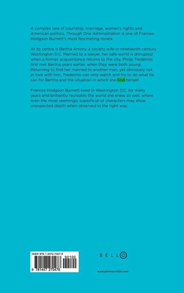 Although best known for Little Lord Fauntleroy and The Secret Garden, Frances Hodgson Burnett was considered one of the leading writers in America on the strength of her adult novels, which made her name in the 1870s and 1880s. Ripe for rediscovery, Bello is proud to bring a select group of these classic novels back into print.br>A complex tale of courtship, marriage, women's rights and American politics, Through One Administration is one of Frances Hodgson Burnett's most fascinating novels.At its centre is Bertha Amory, a society wife in nineteenth century Washington D.C. Married to a lawyer, her safe world is disrupted when a former acquaintance returns to the city. Philip Tredennis first met Bertha years earlier, when they were both young. Returning to find her married to another man, yet obviously not in love with him, Tredennis can only watch and try to do what he can for Bertha and the situation in which she find herself.Frances Hodgson Burnett lived in Washington D.C. for many years and brilliantly recreates the world she knew so well, where even the most seemingly superficial of characters may show unexpected depth when observed in the right way.