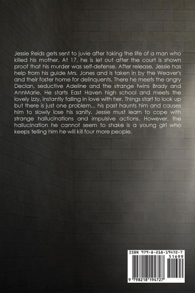Jessie Reids gets sent to juvie after taking the life of a man who killed his mother. At 17, he is let out after the court is shown proof that his murder was self-defense. After release, Jessie has help from his guide Mrs. Jones and is taken in by the Weaver's and their foster home for delinquents. There he meets the angry Declan, seductive Adeline and the strange twins Brady and AnnMarie. He starts East Haven high school and meets the lovely Izzy, instantly falling in love with her. Things start to look up but there is just one problem... his past haunts him and causes him to slowly lose his sanity. Jessie must learn to cope with strange hallucinations and impulsive actions. However, the hallucination he cannot seem to shake is a young girl who keeps telling him he will kill four more people.