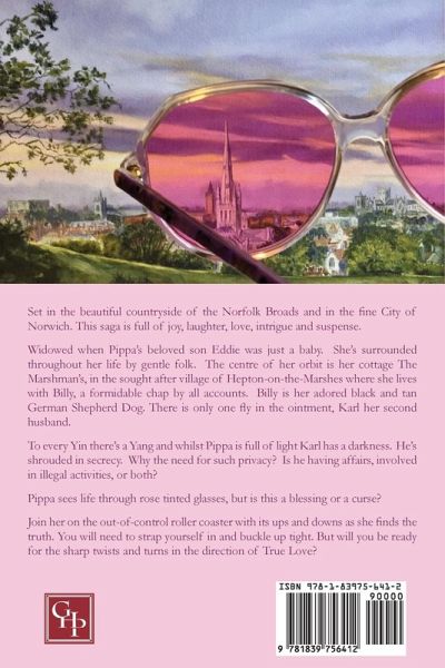 Set in the beautiful countryside of the Norfolk Broads and in the fine City of Norwich. This saga is full of joy, laughter, love, intrigue and suspense. Widowed when Pippa's beloved son Eddie was just a baby. She's surrounded throughout her life by gentle folk. The centre of her orbit is her cottage The Marshman's, in the sought after village of Hepton-on-the-Marshes where she lives with Billy, a formidable chap by all accounts. Billy is her adored black and tan German Shepherd Dog. There is only one fly in the ointment, Karl her second husband. To every Yin there's a Yang and whilst Pippa is full of light Karl has a darkness. He's shrouded in secrecy. Why the need for such privacy? Is he having affairs, involved in illegal activities, or both? Pippa's perfect world is turned upside down as Karl's secret life is exposed. Her life gains a sense of wonder in the loving and supporting arms of Brendon. But will the combination of Karl's deception and Pippa's rose tinted glasses stop her from completing her quest. Join her on the out-of-control roller coaster with its ups and downs as she finds the truth. You will need to strap yourself in and buckle up tight. But will you be ready for the sharp twists and turns in the direction of True Love?