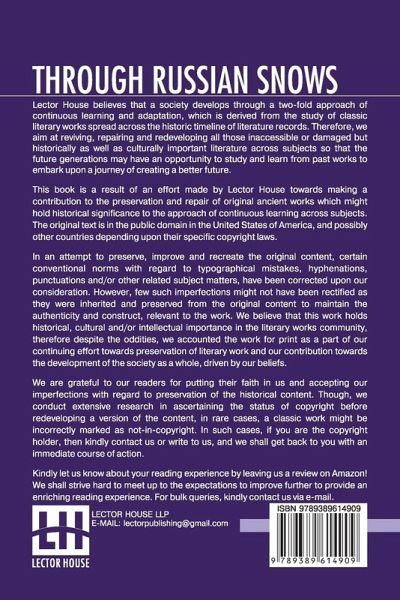 Through Russian Snows: A Story Of Napoleon's Retreat From Moscow This book is a result of an effort made by us towards making a contribution to the preservation and repair of original classic literature. In an attempt to preserve, improve and recreate the original content, we have worked towards: 1. Type-setting & Reformatting: The complete work has been re-designed via professional layout, formatting and type-setting tools to re-create the same edition with rich typography, graphics, high quality images, and table elements, giving our readers the feel of holding a 'fresh and newly' reprinted and/or revised edition, as opposed to other scanned & printed (Optical Character Recognition - OCR) reproductions. 2. Correction of imperfections: As the work was re-created from the scratch, therefore, it was vetted to rectify certain conventional norms with regard to typographical mistakes, hyphenations, punctuations, blurred images, missing content/pages, and/or other related subject matters, upon our consideration. Every attempt was made to rectify the imperfections related to omitted constructs in the original edition via other references. However, a few of such imperfections which could not be rectified due to intentional\unintentional omission of content in the original edition, were inherited and preserved from the original work to maintain the authenticity and construct, relevant to the work. We believe that this work holds historical, cultural and/or intellectual importance in the literary works community, therefore despite the oddities, we accounted the work for print as a part of our continuing effort towards preservation of literary work and our contribution towards the development of the society as a whole, driven by our beliefs. We are grateful to our readers for putting their faith in us and accepting our imperfections with regard to preservation of the historical content. HAPPY READING!