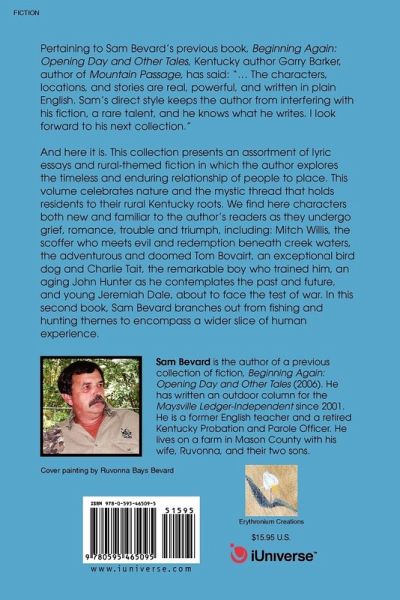 Pertaining to Sam Bevard's previous book, Beginning Again: Opening Day and Other Tales, Kentucky author Garry Barker, author of Mountain Passage, has said: ". The characters, locations, and stories are real, powerful, and written in plain English. Sam's direct style keeps the author from interfering with his fiction, a rare talent, and he knows what he writes. I look forward to his next collection." And here it is. This collection presents an assortment of lyric essays and rural-themed fiction in which the author explores the timeless and enduring relationship of people to place. This volume celebrates nature and the mystic thread that holds residents to their rural Kentucky roots. We find here characters both new and familiar to the author's readers as they undergo grief, romance, trouble and triumph, including: Mitch Willis, the scoffer who meets evil and redemption beneath creek waters, the adventurous and doomed Tom Bovairt, an exceptional bird dog and Charlie Tait, the remarkable boy who trained him, an aging John Hunter as he contemplates the past and future, and young Jeremiah Dale, about to face the test of war. In this second book, Sam Bevard branches out from fishing and hunting themes to encompass a wider slice of human experience.