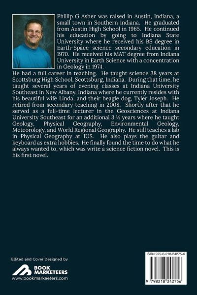 Phillip G Asher was raised in Austin, Indiana, a small town in Southern Indiana. He graduated from Austin High School in 1965. He continued his education by going to Indiana State University, where he received his BS degree in Earth-Space science secondary education in 1970. He received his MAT degree from Indiana University in Earth Science with a concentration in Geology in 1974. He had a full career in teaching. He taught science for 38 years at Scottsburg High School, Scottsburg, Indiana. During that time, he taught several years of evening classes at Indiana University Southeast in New Albany, Indiana, where he currently resides with his beautiful wife, Linda, and their beagle dog, Tyler Joseph. He retired from secondary teaching in 2008. Shortly after that, he served as a full-time lecturer in the Geosciences at Indiana University Southeast for an additional 3 ¿ years, where he taught Geology, Physical Geography, Environmental Geology, Meteorology, and World Regional Geography. He still teaches a lab in Physical Geography at IUS. He also plays the guitar and keyboard as extra hobbies. He finally found the time to do what he always wanted to, which was write a science fiction novel. This is his first novel.