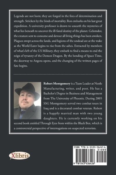 Legends are not born; they are forged in the fires of determination and strength. Stricken by the binds of mortality, Ron embarks on his last great expedition. A university professor is drawn to unearth the mysteries of what lies beneath to uncover the ill-fated destiny of the planet. Gelomdor, the creature sent to consume and devour all living things has been awoken. Plagues swept across the lands, and legions of the undead are at the wake as the World Eater begins to rise from the ashes. Extracted by members of what?s left of the US Military, they embark to find a means to end the reign of tyranny of the Demon Dragon. By the bending of Space Time, the doorway to Angora opens, and the changing of the written pages of fate begins.