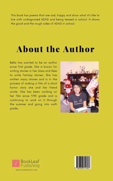 This book has poems that are sad, happy and show what it's like to live with undiagnosed ADHD and being teased in school. It shows the good and the rough sides of ADHD in school.
