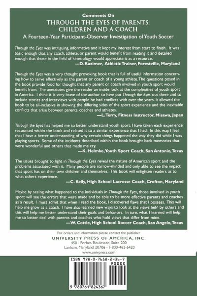 The interactions taking place between parents, children and coaches are recounted in this participant-observer investigation of American youth soccer. The study forming the basis of this book took place in the context of the recreational and competitive club soccer settings over a fourteen-year period in which the author served as a head coach-observer for twelve years and as a parent-observer for two. Questions and comments are provided for parents and coaches that will assist them in understanding the dynamics existing in the youth sport setting and in dealing with the inevitable conflict…mehr