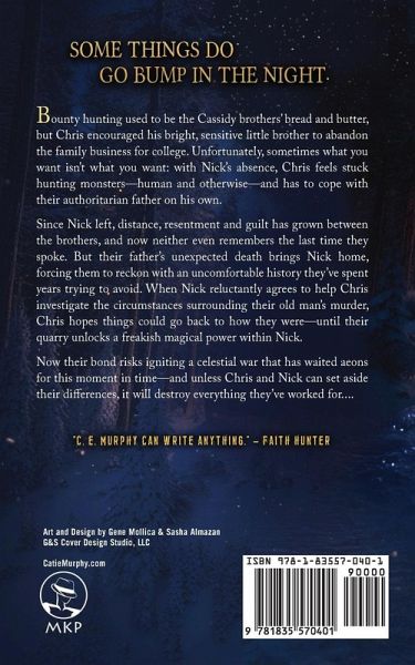 Some things do go bump in the night. Bounty hunting used to be the Cassidy brothers' bread and butter, but Chris encouraged his bright, sensitive little brother to abandon the family business for college. Unfortunately, sometimes what you want isn't what you want: with Nick's absence, Chris feels stuck hunting monsters-human and otherwise-and has to cope with their authoritarian father on his own. Since Nick left, distance, resentment and guilt has grown between the brothers, and now neither even remembers the last time they spoke. But their father's unexpected death brings Nick home, forcing them to reckon with uncomfortable history they've spent years trying to avoid. When Nick reluctantly agrees to help Chris investigate the circumstances surrounding their old man's murder, Chris hopes things could go back to how they were-until their quarry unlocks a freakish magical power within Nick. Now their bond risks igniting a celestial war that has waited aeons for this moment in time-and unless Chris and Nick can set aside their differences, it will destroy everything they've worked for....