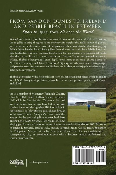 Golf is more than a game. It mirrors life and is a great revealer of character. Take it from author Joseph Bronson, who has played golf for over 40 years at many of the top courses in the world, from the United States to Scotland, United Kingdom, China, Japan, New Zealand, and even Israel. Through the Green: Golf Shots, Spots, and Stories Inspirations and Aspirations details how to play Pebble Beach from an amateur and professional perspective; contains a complete layout of the world's hardest and most enjoyable holes that he has played; and delights with a fictional short story about a retired business executive who tries to compete for a USGA national championship. Golf is a difficult game to play and more difficult to master, but with Bronson's experience and insights, golfers and non-golfers alike will want to improve their golf game and relish the challenges that the game provides. Proceeds from book sales will facilitate college golf programs and The First Tee.