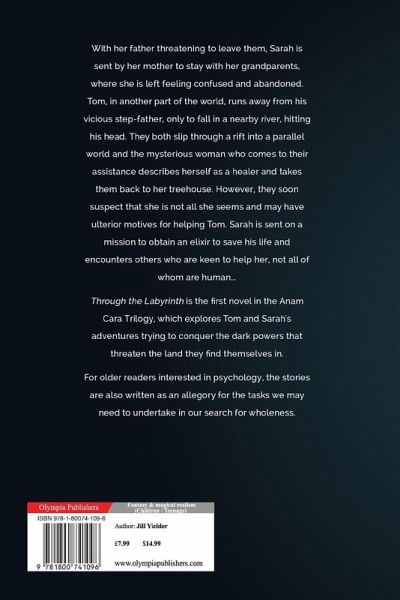 With her father threatening to leave them, Sarah is sent by her mother to stay with her grandparents, where she is left feeling confused and abandoned. Tom, in another part of the world, runs away from his vicious step-father, only to fall in a nearby river, hitting his head. They both slip through a rift into a parallel world and the mysterious woman who comes to their assistance describes herself as a healer and takes them back to her treehouse. However, they soon suspect that she is not all she seems and may have ulterior motives for helping Tom. Sarah is sent on a mission to obtain an elixir to save his life and encounters others who are keen to help her, not all of whom are human... Through the Labyrinth is the first novel in the Anam Cara Trilogy, which explores Tom and Sarah's adventures trying to conquer the dark powers that threaten the land they find themselves in. For older readers interested in psychology, the stories are also written as an allegory for the tasks we may need to undertake in our search for wholeness.