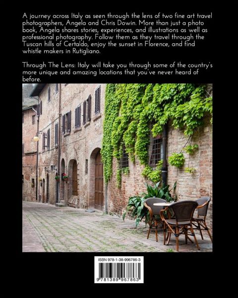Two travelers discover their passion for photography on a trip of a lifetime. Through The Lens: Italy is filled with their photography from the country that inspired them to become photographers to begin with. Angela Dowin shares her experiences and entries made in her journal during that eight month European excursion. She writes, "You get to pull yourself out of your ordinary and jump into someone else's ordinary. You live life just as before, but you get a new set of eyes through which to experience life." With experiences like this Angela takes you on a journey through the lens of Dowin Photography.