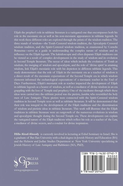 Elijah the prophet’s role in rabbinic literature is a variegated one that encompasses both his role in the messianic era as well as his non-messianic appearances in rabbinic legends. In this work these different roles are explored through the prism of the wisdom tradition. The three stands of wisdom—the Torah-Centered wisdom tradition, the Apocalyptic-Centered wisdom tradition, and the Spirit-Centered wisdom tradition, as enumerated by Cornelis Bennema—serve as a guide in understanding the complex nature of wisdom and its influence on the Elijah legends. The kaleidoscopic and often disparate Elijah traditions can be viewed as a result of complex developments in the study of wisdom and its evolution in Second Temple literature. The nexus of ideas which include the evolution of Torah as wisdom, the merging of wisdom and apocalyptic, and the role of ‘divine spirit’ in attaining wisdom, link Elijah’s messianic role with his depiction in different rabbinic legends. This study demonstrates that the role of Elijah in the messianic era as a teacher of wisdom is a direct result of the messianic expectations of the Second Temple era in which wisdom elements informed the eschatological expectations of a messianic teacher in the End of Days. Furthermore, Elijah’s messianic role as teacher impacted the development of Elijah in rabbinic legends as a bearer of wisdom, as well as a mediator of divine wisdom in an era grappling with the loss of Temple and prophecy. One of the mediums through which these ideas were carried into the rabbinic period was the pietists, ¿asidim, who resembled the holy men of Late Antiquity. These pietists were connected with the Spirit-Centered wisdom tradition in Second Temple texts as well as rabbinic literature. It will be demonstrated that their role was integral to the development of the Elijah traditions and the dissemination of wisdom and pietistic ideas in rabbinic literature. This work will illustrate that the Elijah traditions in rabbinic literature were an outgrowth of the numerous evolutions in wisdom and apocalyptic thought during the Second Temple era. These developments can explain the variegated nature of the Elijah traditions which reflect his role as a teacher of the Law, a mediator of divine secrets, and a conduit for divine inspiration.