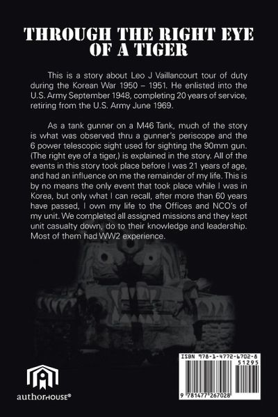 This is a story about Leo J Vaillancourt tour of duty during the Korean War 1950 - 1951. He enlisted into the U.S. Army September 1948, completing 20 years of service, retiring from the U.S. Army June 1969. As a tank gunner on a M46 Tank, much of the story is what was observed thru a gunner's periscope and the 6 power telescopic sight used for sighting the 90mm gun. (The right eye of a tiger,) is explained in the story. All of the events in this story took place before I was 21 years of age, and had an influence on me the remainder of my life. This is by no means the only event that took place while I was in Korea, but only what I can recall, after more than 60 years have passed, I own my life to the Offices and NCO's of my unit. We completed all assigned missions and they kept unit casualty down, do to their knowledge and leadership. Most of them had WW2 experience.