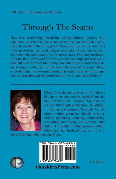 THROUGH THE SEAMS How does celebrating friendship, raising children, dealing with loneliness, experiencing loss, conquering fear, and being in love all relate to baseball? In Through The Seams, a steadfast fan discovers life's greatest moments, challenges, risks and rewards have much in common with our homegrown American sport. Drawing inspiration from the field, baseball moments, images, and rivalries are poetically personified as the spirit of the game is infused into expressions of animated verse. Being a baseball fan is not essential (though it helps!) to enjoy this unique perspective as seen through the sports lens of a wife, mother and friend.