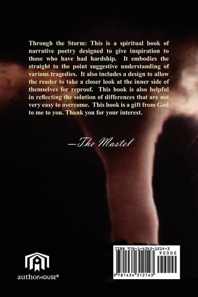 Through the Storm: This is a spiritual book of narrative poetry designed to give inspiration to those who have had hardship. It embodies the straight to the point suggestive understanding of various tragedies. It also includes a design to allow the reader to take a closer look at the inner side of themselves for reproof. This book is also helpful in reflecting the solution of differences that are not very easy to overcome. This book is a gift from God to me to you. Thank you for your interest. The Mastel