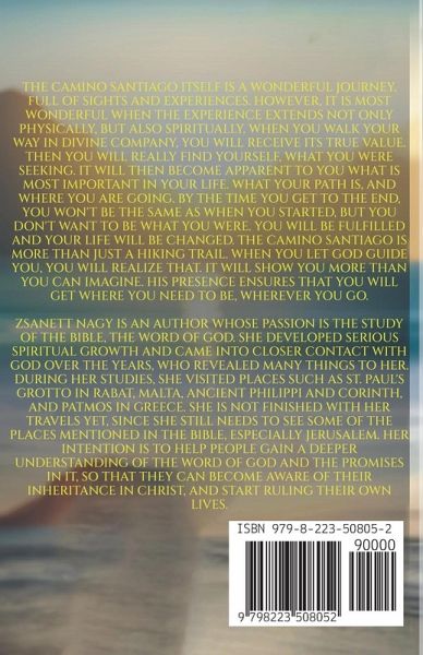 The Camino Santiago itself is a wonderful journey, full of sights and experiences. However, it is most wonderful when the experience extends not only physically, but also spiritually. When you walk your way in divine company, you will receive its true value. Then you will really find yourself, what you were seeking. It will then become apparent to you what is most important in your life. What your path is, and where you are going. By the time you get to the end, you won't be the same as when you started, but you don't want to be what you were. You will be fulfilled and your life will be changed. The Camino Santiago is more than just a hiking trail. When you let God guide you, you will realize that. It will show you more than you can imagine. His presence ensures that you will get where you need to be, wherever you go. Zsanett Nagy is an author whose passion is the study of the Bible, the Word of God. She developed serious spiritual growth and came into closer contact with God over the years, who revealed many things to her. During her studies, she visited places such as St. Paul's Grotto in Rabat, Malta, ancient Philippi and Corinth, and Patmos in Greece. She is not finished with her travels yet, since she still needs to see some of the places mentioned in the Bible, especially Jerusalem. Her intention is to help people gain a deeper understanding of The Word of God and the promises in it, so that they can become aware of their inheritance in Christ, and start ruling their own lives.