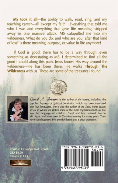 MS took it all—the ability to walk, read, sing, and my teaching career—all except my faith. Everything that told me who I was and everything that gave life meaning, stripped away in one massive attack. MS catapulted me into my wilderness. What do you do, and who are you, after that kind of loss? Is there meaning, purpose, or value in life anymore? If God is good, there has to be a way through...even something as devastating as MS. I determined to find all the good I could along this path. Jesus knows His way around the wilderness—He has been there. He walks Through The Wilderness with us. These are some of the treasures I found.