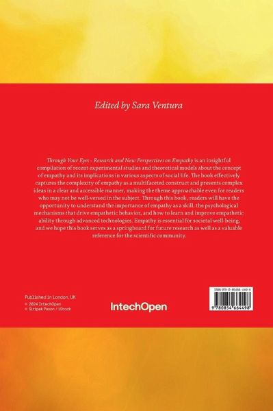 Through Your Eyes - Research and New Perspectives on Empathy is an insightful compilation of recent experimental studies and theoretical models about the concept of empathy and its implications in various aspects of social life. The book effectively captures the complexity of empathy as a multifaceted construct and presents complex ideas in a clear and accessible manner, making the theme approachable even for readers who may not be well-versed in the subject. Through this book, readers will have the opportunity to understand the importance of empathy as a skill, the psychological mechanisms that drive empathetic behavior, and how to learn and improve empathetic ability through advanced technologies. Empathy is essential for societal well-being, and we hope this book serves as a springboard for future research as well as a valuable reference for the scientific community.