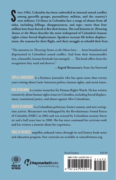 For nearly five decades, Colombia has been embroiled in internal armed conflict among guerrilla groups, paramilitary militias, and the country’s own military. Civilians in Colombia face a range of abuses from all sides, including killings, disappearances and rape—and more than four million have been forced to flee their homes. The oral histories in Throwing Stones at the Moon describe the most widespread of Colombia’s human rights crises: forced displacement. Speakers recount life before displacement, the reasons for their flight, and their struggle to rebuild their lives.