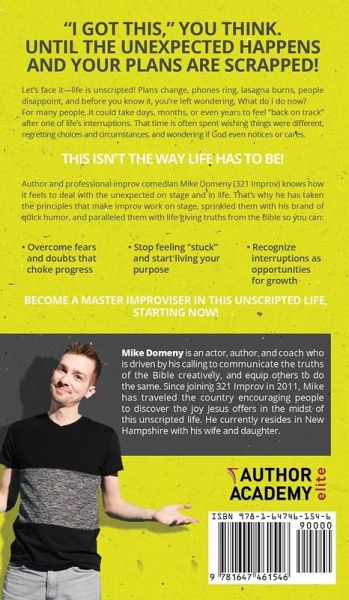 Let's face it-life is unscripted! Plans change, phones ring, lasagna burns, people disappoint, and before you know it, you're left wondering, What do I do now?For many people, it could take days, months, or even years to feel "back on track" after one of life's interruptions. That time is often spent wishing things were different, regretting choices and circumstances, and wondering if God even notices or cares. This isn't the way life has to be! Author and professional improv comedian Mike Domeny (321 Improv) knows how it feels to deal with the unexpected on stage and in life. That's why he has taken the principles that make improv work on stage, sprinkled them with his brand of quick humor, and paralleled them with life-giving truths from the Bible so you can: Overcome fears and doubts that choke progressStop feeling "stuck" and start living your purposeRecognize interruptions as opportunities for growth Become a master improviser in this unscripted life, starting now!
