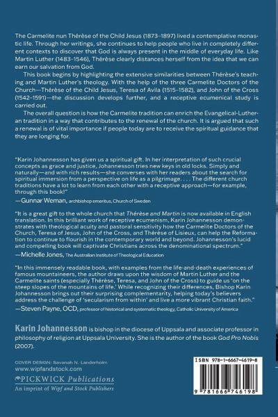 The Carmelite nun Therese of the Child Jesus (1873-1897) lived a contemplative monastic life. Through her writings, she continues to help people who live in completely different contexts to discover that God is always present in the middle of everyday life. Like Martin Luther (1483-1546), Therese clearly distances herself from the idea that we can earn our salvation from God. This book begins by highlighting the extensive similarities between Therese's teaching and Martin Luther's theology. With the help of the three Carmelite Doctors of the Church - Therese of the Child Jesus, Teresa of Avila (1515-1582) and John of the Cross (1542-1591) - the discussion develops further, and a receptive ecumenical study is carried out. The overall question is how the Carmelite tradition can enrich the Evangelical-Lutheran tradition in a way that contributes to the renewal of the church. It is argued that such a renewal is of vital importance if people today are to receive the spiritual guidance that they are longing for.