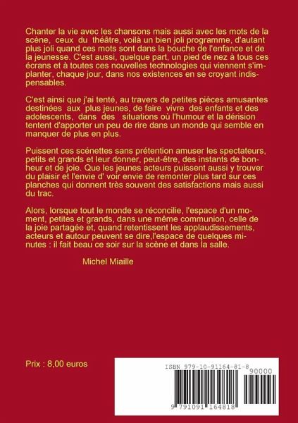 L'auteur vous offre ici, quelques petits pièces de théâtre, courtes, destinées aux enfants et aux adolescents en espérant qu'elles sauront plaire à la fois aux lecteurs et au public en leur apportant quelques instants de bonheur et de joie.Il se tient à la disposition d'éventuels metteurs en scène qui seraient intéressés par ces scénettes.