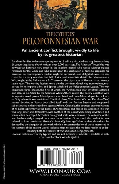 An ancient conflict brought vividly to life by its greatest historian For those familiar with contemporary works of military history there may be something disconcerting about a book written over 2,000 years ago. The Athenian Thucydides was however an historian very much in the modern mould, who wrote without making reference to 'the Gods' and who relied upon the verification of facts to assemble his narrative. So contemporary readers might be surprised-and delighted even-to discover here a very readable text full of vital and immediate detail. The Peloponnesian War, fought in the fifth century B. C between the city-states of Greece, lasted twenty seven years. The warring factions were the the dominant Greek city-state Athens, supported by its imperial allies, and Sparta which led the Peloponnesian League. The war comprised three phases, the first of which, the 'Archidamian War' involved sustained land attacks on Attica by the Spartans whilst Athens raided the enemy coastline with its superior naval power. A brief peace soon failed and then Athens dispatched a force to Sicily where it was annihilated. The final phase, 'The Ionian War' or 'Decelean War,' proved decisive, as Sparta both allied itself with the Persian Empire and supported subject states in their rebellions against Athens. Critically, this strategy deprived Athens of its naval supremacy at the Battle of Aegospotami and forced its surrender. The war was long, bitter and destructive, with swathes of the countryside being devastated and whole cities destroyed. Atrocities on a grand scale were common. The outcome of the war fundamentally changed the character of ancient Greece and the conflict is considered to have terminated Greece's classical 'golden age.' New readers should not be daunted by the antiquity of this work which is recommended to all those interested in the warfare of the ancient world. Includes maps to assist the modern reader in understanding both the theatre of war and specific engagements. Leonaur editions are newly typeset and are not facsimiles; each title is available in softcover and hardback with dustjacket.
