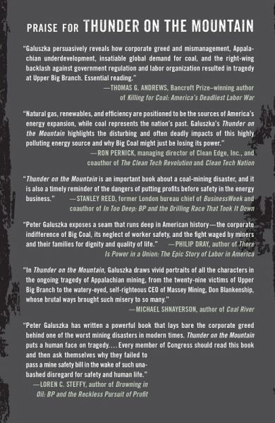 "Scathing exposé of the coal industry." --The New York Times Book Review On April 5, 2010, an explosion ripped through Massey Energy's Upper Big Branch Mine, killing twenty-nine coal miners. This tragedy was the deadliest mine disaster in the United States in forty years-a disaster that never should have happened. These deaths were rooted in the cynical corporate culture of Massey and its notorious former CEO Don Blankenship, and were part of an endless cycle of poverty, exploitation, and environmental abuse that has dominated the Appalachian coalfields since coal was first discovered there. And the cycle continues unabated as coal companies bury the most insidious dangers deep underground, all in search of higher profits, and hide the true costs from regulators, unions, and investors alike. But the disaster at Upper Big Branch goes beyond the coalfields of West Virginia. It casts a global shadow, calling into bitter question why coal miners in the United States are sacrificed to erect cities on the other side of the world, why the coal wars have been allowed to rage, polarizing the country, and how the world's voracious appetite for energy is satisfied at such horrendous cost. With Thunder on the Mountain, Peter A. Galuszka pieces together the true story of greed and negligence behind the tragedy at the Upper Big Branch Mine, and in doing so he has created a devastating portrait of an entire industry that exposes the coal-black motivations that led to the death of twenty-nine miners and fuel the ongoing war for the world's energy future.