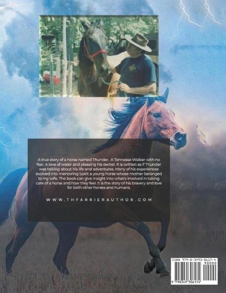 A true story of a horse named Thunder. A Tennesse Walker with no fear. A love of water and pleasing his owner. It is written as if Thunder was talking about his life and adventures. Many of his experiences evolved into mentoring Spirit a young horse whose mother belonged to my wife. The book can give insight into what's involved in taking care of a horse and how they feel. It is the story of his bravery and love for both other horses and humans.