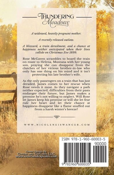 A widowed, heavily pregnant mother. A recently released outlaw. What could possibly go wrong? As a former outlaw, James Dodson has paid for his crimes. Everything's been taken from him except his sister and his pride, although his pride isn't worth much when he has lived a life full of misdeeds. With a chance to start over on his brother-in-law's ranch, he is determined to not let it go to waste. Rose McGaven is desperate to find sanctuary for her young son and unborn child. She'll do anything to escape the clutches of her vicious brother-in-law who only has one thing on his mind, and it isn't protecting his late brother's wife. When Rose and James find they are the only passengers on a derailed train during a Christmas Eve blizzard, James comes to her rescue in more ways than one. He offers her his name as worthless as it may seem. As she looks into his dark brown eyes, her heart flutters, and she takes a chance on what he is offering. As they navigate a path neither expected, difficulties from their pasts endanger their future, but James makes a promise he's not willing to neglect. Will Rose let James keep his promise or will she let fear rule her heart and let their chance at happiness disappear like a flame snuffed out from a harsh winter's breeze? Thundering Meadows is the third hot read in the Thundering Mountain Ranch series. All books in the series can be read as a standalone with a happily ever after in each one.