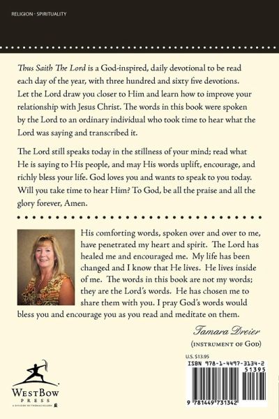 Thus Saith The Lord is a God-inspired, daily devotional to be read each day of the year, with three hundred and sixty five devotions. Let the Lord draw you closer to Him and learn how to improve your relationship with Jesus Christ. The words in this book were spoken by the Lord to an ordinary individual who took time to hear what the Lord was saying and transcribed it. The Lord still speaks today in the stillness of your mind; read what He is saying to His people, and may His words uplift, encourage, and richly bless your life. God loves you and wants to speak to you today. Will you take time to hear Him? To God, be all the praise and all the glory forever, Amen.