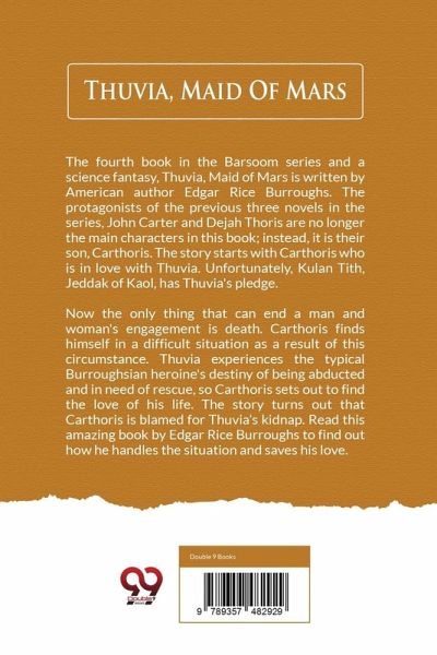 The fourth book in the Barsoom series and a science fantasy, Thuvia, Maid of Mars is written by American author Edgar Rice Burroughs. The protagonists of the previous three novels in the series, John Carter and Dejah Thoris are no longer the main characters in this book; instead, it is their son, Carthoris. The story starts with Carthoris who is in love with Thuvia. Unfortunately, Kulan Tith, Jeddak of Kaol, has Thuvia's pledge. Now the only thing that can end a man and woman's engagement is death. Carthoris finds himself in a difficult situation as a result of this circumstance. Thuvia…mehr