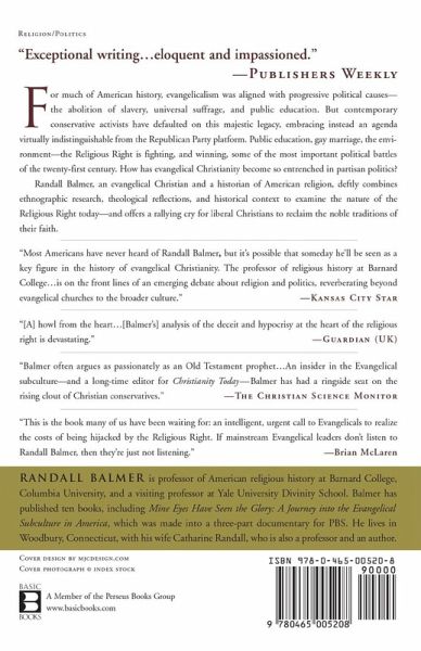 For much of American history, evangelicalism was aligned with progressive political causes-the abolition of slavery, universal suffrage, and public education. But contemporary conservative activists have defaulted on this majestic legacy, embracing instead an agenda virtually indistinguishable from the Republican Party platform. How has evangelical Christianity become so entrenched in partisan politics? Randall Balmer, an evangelical Christian and a historian of American religion, deftly combines ethnographic research, theological reflections, and historical context to examine the nature of the Religious Right today-and offers a rallying cry for liberal Christians to reclaim the noble traditions of their faith.