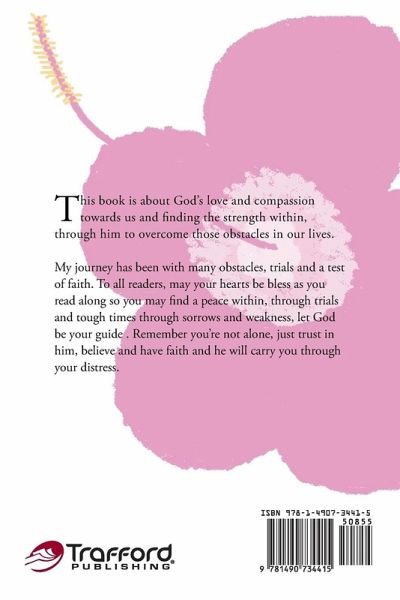 This book is about God's love and compassion towards us and finding the strength within,so that through him we can overcome those obstacles in our lives. My journey has been with many obstacles , trials and a test of faith. To all readers ,may your hearts be blessed as you read along , so you may find a peace within, through trials and tough times , through sorrows and weakness, let God be your guide . Remember you're not alone , just trust in him, believe, have faith and he will carry you through your distress.