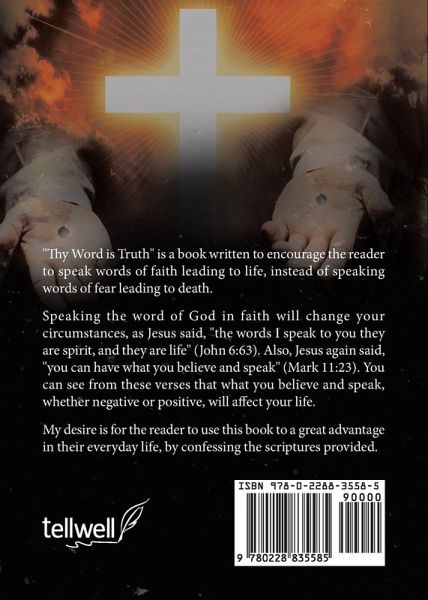 "Thy Word is Truth" is a book written to encourage the reader to speak words of faith leading to life, instead of speaking words of fear leading to death. Speaking the word of God in faith will change your circumstances, as Jesus said, "the words I speak to you they are spirit, and they are life" (John 6:63). Also, Jesus again said, "you can have what you believe and speak" (Mark 11:23). You can see from these verses that what you believe and speak, whether negative or positive, will affect your life. My desire is for the reader to use this book to a great advantage in their everyday life, by confessing the scriptures provided.