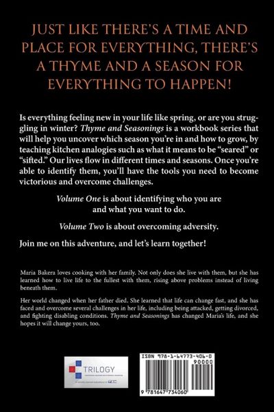 Just like there's a time and place for everything, there's a thyme and a season for everything to happen! Is everything feeling new in your life like spring, or are you struggling in winter? Thyme and Seasonings is a workbook series that will help you uncover which season you're in and how to grow, by teaching kitchen analogies such as what it means to be "seared" or "sifted." Our lives flow in different times and seasons. Once you're able to identify them, you'll have the tools you need to become victorious and overcome challenges. Volume One is about identifying who you are and what you want to do. Volume Two is about overcoming adversity. Join me on this adventure, and let's learn together!