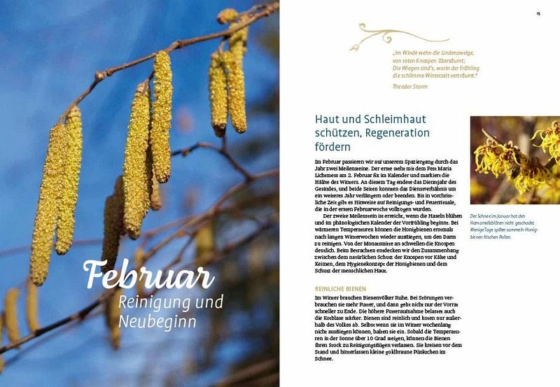 Endlich ein Buch, dass die naturheilkundlichen Lieblingsprodukte Honig, Pollen, Propolis und Heilpflanzen vereint. Monat für Monat behandelt die Autorin einen Gesundheitsaspekt: Immunsystem stärken mit Wildsamen und Pollen im Januar, Vitalkräfte sammeln mit jungen Wildkräutern im März, Leber und Galle mit Bitterstoffen pflegen im April, Kreislauf und Gelenke unterstützen im Wandermonat Juli, Darm sanieren mit Wurzeln im Oktober. Passend zum Monatsthema gibt es besondere Gesundheits- und Genussrezepte mit Kräutern und Bienenprodukten. Heilsame Pflanzen und die Schätze von unseren Honigbienen ergänzen sich in idealer Weise, um unsere Gesundheit auf achtsame Weise zu pflegen.