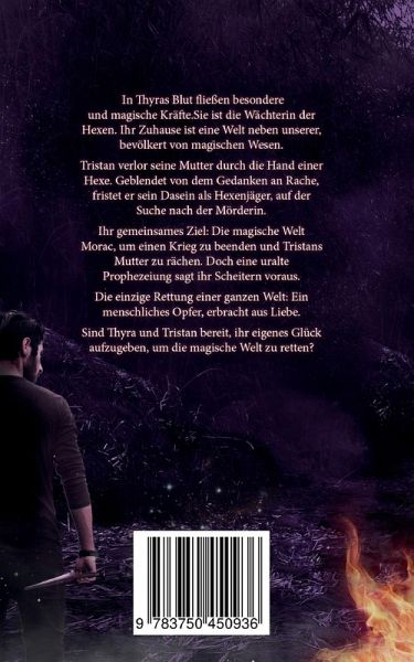 In Thyras Blut fließen besondere und magische Kräfte. Sie ist die Wächterin der Hexen. Ihr Zuhause ist eine Welt neben unserer, bevölkert von magischen Wesen. Tristan verlor seine Mutter durch die Hand einer Hexe. Geblendet von dem Gedanken an Rache, fristet er sein Dasein als Hexenjäger, auf der Suche nach der Mörderin. Ihr gemeinsames Ziel: Die magische Welt Morac, um einen Krieg zu beenden und Tristans Mutter zu rächen. Doch eine uralte Prophezeiung sagt ihr Scheitern voraus. Die einzige Rettung einer ganzen Welt: Ein menschliches Opfer, erbracht aus Liebe. Sind Thyra und Tristan bereit, ihr eigenes Glück aufzugeben, um die magische Welt zu retten? Dieses Buch ist ein Relaunch von "Thyra und die Hexenjäger". Triggerwarnung: Dieses Buch enthält ein paar anschaulichere Gewaltszenen.
