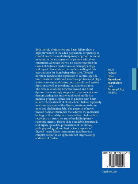 Both thyroid dysfunction and heart failure show a high prevalence in the adult population. Frequently, in clinical practice, a multidisciplinary approach is useful to optimize the management of patients with these conditions. Although there is no doubt regarding the close link between cardiovascular pathophysiology and thyroid homeostasis, our understanding of this association is far from being exhaustive. Thyroid hormone regulates the expression of cardiac-specific functional contractile and structural proteins and plays a pivotal role in modulating both diastolic and systolic function as well as peripheral vascular resistance. The close relationship between thyroid and heart dysfunction is strongly supported by recent evidence demonstrating that an altered thyroid profile is a negative prognostic predictor in patients with heart failure. The treatment of chronic heart failure, especially in advanced stages of the disease, continues to be an open and challenging field. The potential of novel thyroid hormone therapies that address the molecular biology of thyroid dysfunction and heart failure thus represents an attractive area of multidisciplinary scientific interest. This book is a readable, integrated, and highly up to date presentation of the clinical, pathophysiological, and basic science aspects of thyroid-heart failure interactions. It addresses a complex subject in an approach that targets a large audience of readers.