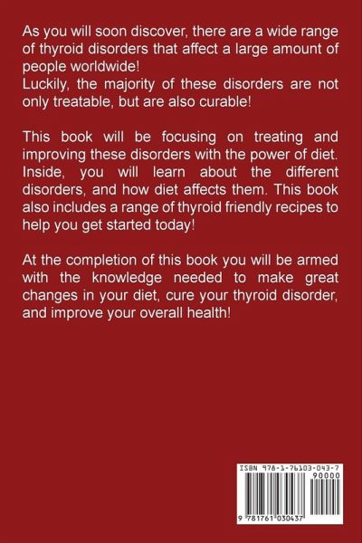 THYROID DIET As you will soon discover, there are a wide range of thyroid disorders that affect a large amount of people worldwide! Luckily, the majority of these disorders are not only treatable, but are also curable! This book will be focusing on treating and improving these disorders with the power of diet. Inside, you will learn about the different disorders, and how diet affects them. This book also includes a range of thyroid friendly recipes to help you get started today! At the completion of this book you will be armed with the knowledge needed to make great changes in your diet, cure…mehr