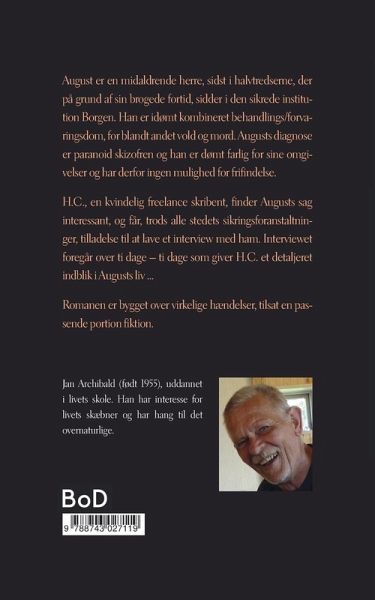 August er en midaldrende herre, sidst i halvtredserne, der på grund af sin brogede fortid sidder i den sikrede institution Borgen. Han er idømt kombineret behandlings/forvaringsdom, for blandt andet vold og mord. Augusts diagnose er paranoid skizofren og han er dømt farlig for sine omgivelser, og har derfor ingen mulighed for frifindelse. H.C., en kvindelig freelance skribent, finder Augusts sag interessant, og får, trods alle stedets sikringsforanstaltninger, tilladelse til at lave et interview med ham. Interviewet foregår over ti dage - ti dage som giver H.C. et detaljeret indblik i Augusts liv ... Romanen er bygget over virkelige hændelser, tilsat en passende portion fiktion.