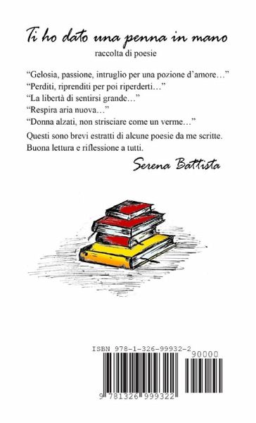 Raccolta di poesie. Questo libro ha significato tanto per me. È iniziato senza pretese. Le idee sono partite dalla mia mente, seguendo un flusso coerente, arrivando alla mia mano, consentendomi di mettere per iscritto i miei pensieri. "Gelosia, passione, intruglio per una pozione d'amore..." "Perditi, riprenditi per poi riperderti..." "La libertà di sentirsi grande..." "Respira aria nuova..." "Donna alzati, non strisciare come un verme..." Questi sono brevi estratti di alcune poesie da me scritte.