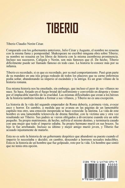 Si quiere descubrir la fascinante vida de Tiberio, siga leyendo... Comparado con los gobernantes anteriores, Julio César y Augusto, el nombre no resuena con la misma fama y pomposidad. Shakespeare no escribió ninguna obra sobre Tiberio; su nombre no resuena en los libros de historia con la misma asombrosa prominencia. Incluso sus sucesores, Calígula y Nerón, son más famosos que él. De hecho, Tiberio difícilmente puede ser llamado famoso en todo caso. La historia lo conoce más por su infamia. Tiberio es recordado, si es que es recordado, por su mal comportamiento. Pasó gran parte de su mandato en una isla griega rodeado de todos los placeres que su carne enfermiza podía soñar, abandonando su imperio al escándalo y la intriga. Es un gran villano de la historia romana. En Tiberio: Una fascinante guía de la vida del segundo emperador de la antigua Roma y de cómo gobernó el Imperio romano, descubrirá temas como:Ante los emperadores Ante los emperadores El Ojo del Emperador A la sombra de Augusto Primera Conquista Matrimonio forzado Roca de fondo Ascensión Una pendiente resbaladiza hacia Capri La última jabalina ¡Y mucho, mucho más! ¡Obtenga este libro ahora para aprender más sobre Tiberio!