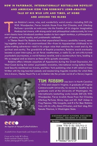 In Tibetan Peach Pie, Robbins turns that unparalleled literary sensibility inward, stitching together stories of his unconventional life, from his Appalachian childhood to his globetrotting adventures -told in his unique voice that combines the sweet and sly, the spiritual and earthy. The grandchild of Baptist preachers, Robbins would become over the course of half a century a poet-interruptus, an air force weatherman, a radio dj, an art-critic-turned-psychedelic-journeyman, a world-famous novelist, and a counter-culture hero, leading a life as unlikely, magical, and bizarre as those of his quixotic characters.