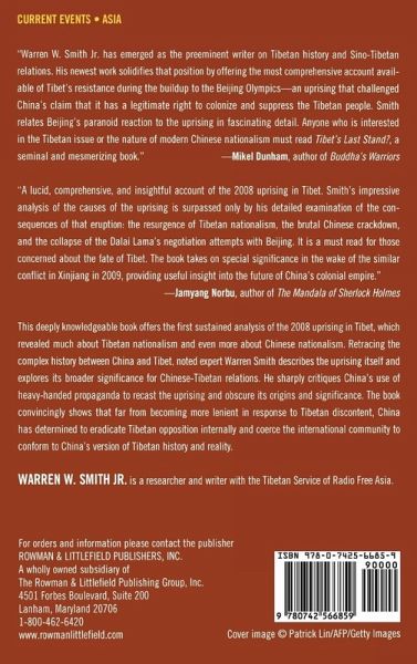 This deeply knowledgeable book offers the first sustained analysis of the 2008 uprising in Tibet, which revealed much about Tibetan nationalism and even more about Chinese nationalism. Retracing the complex history between China and Tibet, noted expert Warren W. Smith Jr. describes the uprising itself and explores its broader significance for Chinese-Tibetan relations. He sharply critiques China's use of heavy-handed propaganda to recast the uprising and obscure its origins and significance. The book convincingly shows that far from becoming more lenient in response to Tibetan discontent, China has determined to eradicate Tibetan opposition internally and coerce the international community to conform to China's version of Tibetan history and reality.